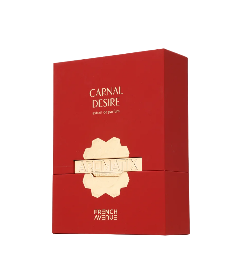 Carnal Desire is a unisex fragrance designed to captivate the senses and emphasize the sophistication of the wearer. The result of an exclusive collaboration between Aromatix, renowned perfume reviewer (Muneeb Alwazeer) and French Avenue is a limited edition fragrance for the luxury connoisseur. Carnal Desire fragrance provides a unique olfactory experience for any special occasion. From the first touch, Carnal Desire impresses with bright notes of cinnamon, raspberry and bergamot. These ingredients combine to create a warm, fruity opening with citrus accents that refresh the senses. It is an inlet that emits energy and magnetic attraction. The heart of the fragrance reveals an irresistible bouquet of irises, cotton candy and roses. These sweet and floral notes add a delicate and romantic dimension, perfectly balancing the intensity of the opening. Carnal desire evokes passion and mystery, turning every moment into an unforgettable memory. The base notes of Carnal Desire have a rich and refined depth. Creamy vanilla and sensual leather combine with cedar, oud and patchouli to create a powerful and long-lasting fragrance trail. This intense finish reflects luxury and elegance, perfect for those who want to leave an unforgettable impression.