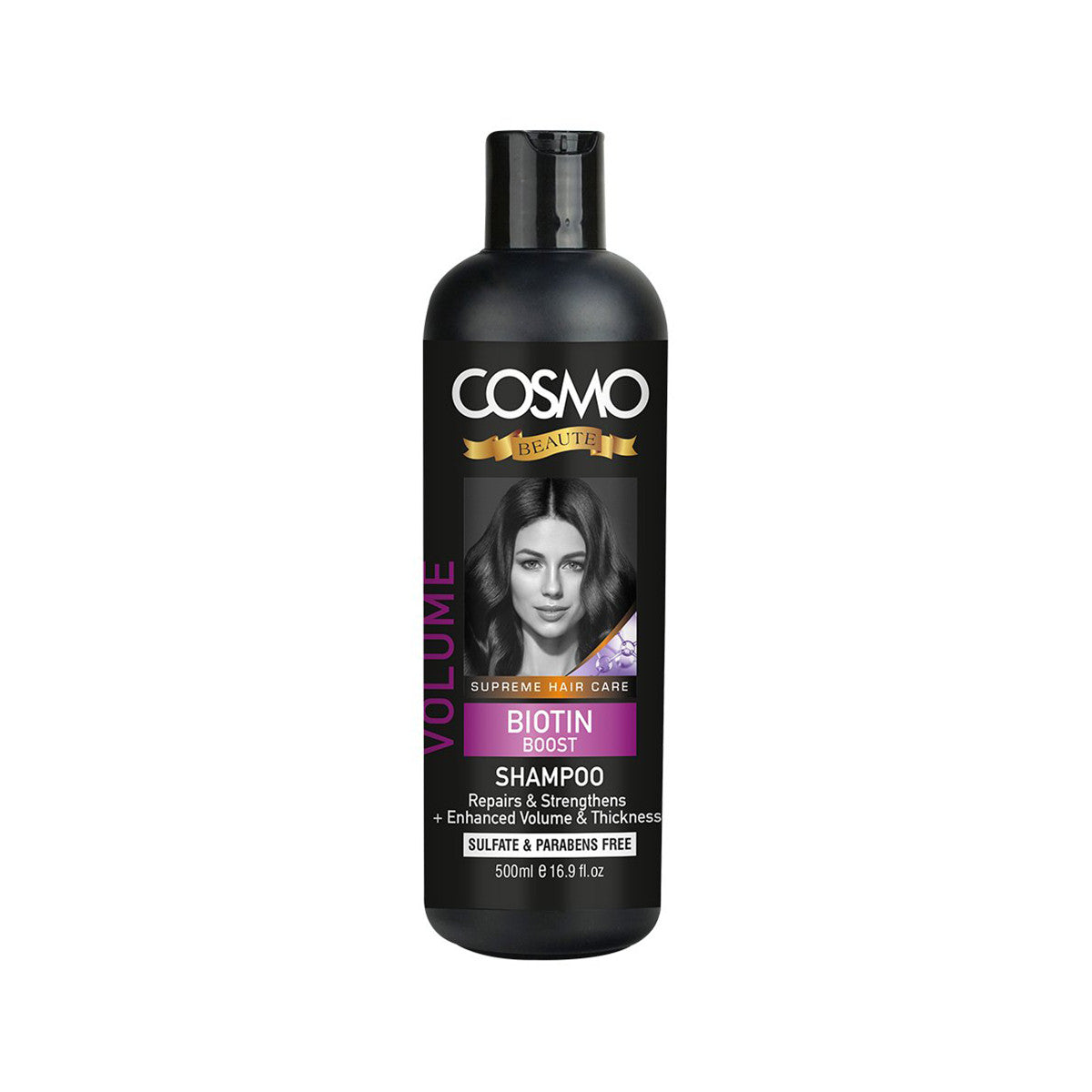 Discover voluminous hair with Cosmo Beaute Hair Care Biotin Boost Enhanced Volume Shampoo. Formulated with biotin, this shampoo boosts hair volume and thickness while enhancing overall hair health. Perfect for achieving fuller-looking hair for both men and women.