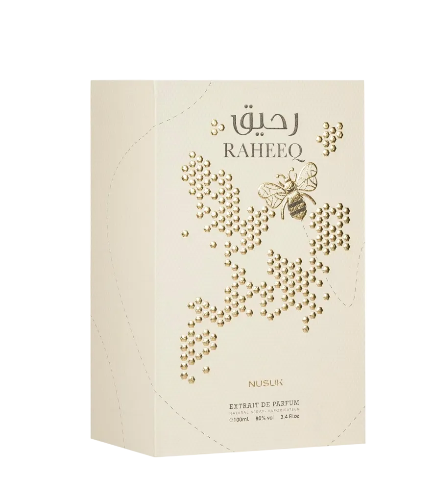 Balanced yet indulgent, radiant yet deep, Raheeq by Nusuk is a fragrance designed to enchant—an inviting blend of sweetness, warmth, and sensual sophistication.