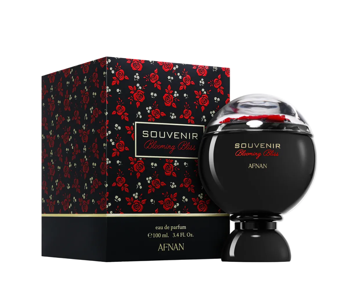Released in 2024, Souvenir Blooming Bliss stands out as a truly unique creation with few comparisons. It inspires confidence, joy, and a bold appreciation of life. The luxurious goblet-shaped bottle, adorned with delicate jeweled roses beneath a transparent dome, represents the black edition of Afnan’s exclusive Souvenir Collection—a perfect gift for lovers of oriental luxury.
