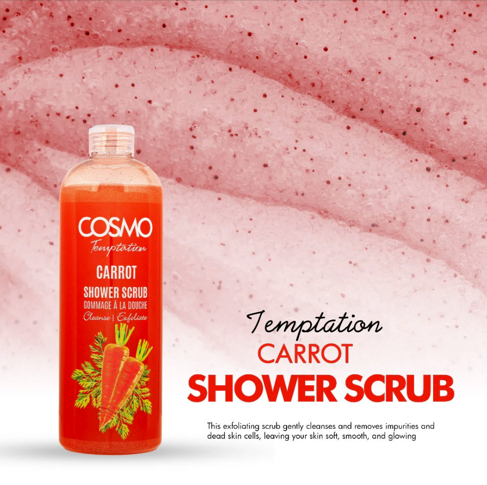Indulge in the ultimate skin-refreshing experience with Temptation Carrot Shower Scrub. Infused with skin-friendly extracts and natural pumice, this gentle scrub cleanses and exfoliates, removing impurities and dead skin cells. The result? Soft, smooth, and glowing skin with a touch of moisture. Enriched with carrot root extract and soothing aloe, this scrub revitalizes and nourishes while providing a refreshing cleanse. Ideal for everyday use, it leaves your skin feeling pampered and radiant.